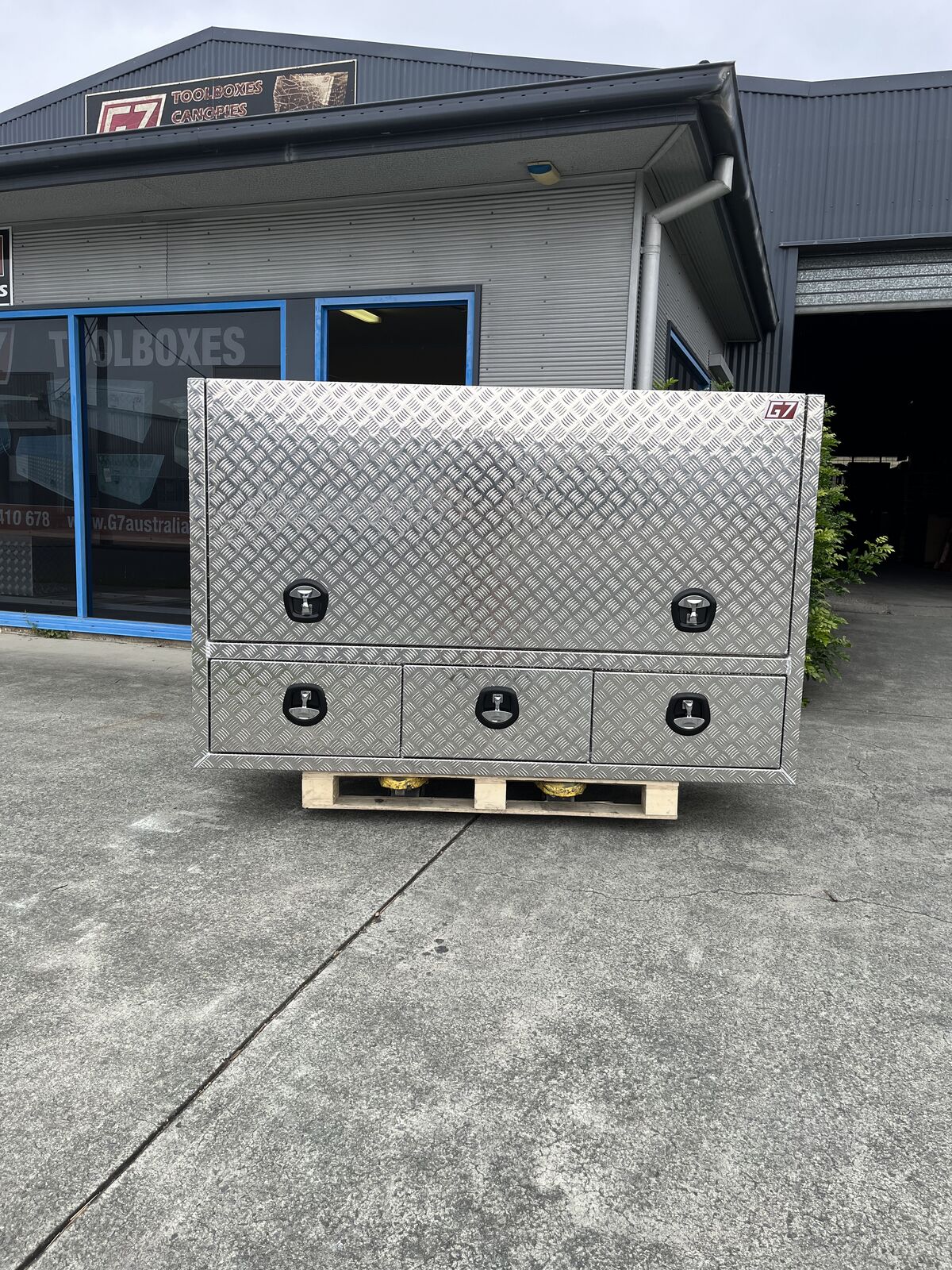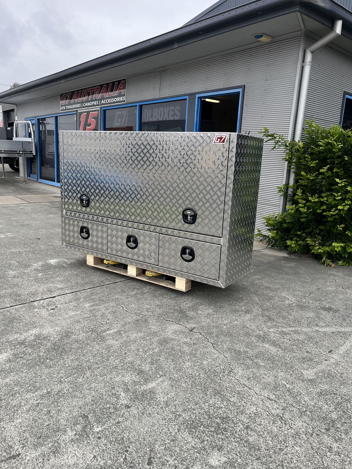 G7 Aluminium Truck Toolboxes are constructed from high quality materials. The Full Door truck tool box range is very popular with tradies and outdoor enthusiasts due the easy access provided by the full size door. Tool storage is no problem with the adjustable height shelf which is also removable if required and a set of sturdy drawers makes tool organisation a breeze. The extra large truck toolbox is the perfect match for all light truck onwers - Isuzu, Hino, Iveco, Mitsubishi, Hyundai and Mazda trucks will benefit from having an extra large square edge truck toolbox on-board. There’s plenty of space in this toolbox for you to create the ultimate work set up, add a few accessories like drawers, shelving units, additional shelves etc to individualise your set up!